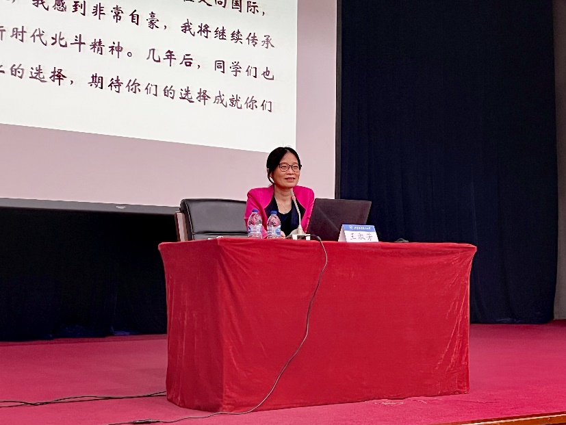 王淑芳老师从自己在北航的读书时光讲起,分享了与北斗结缘的经历,并结合自己20余年的奋斗历程,和同学们分享了关于职业选择、人生方向、航天事业等方面的探索与思考。同时,从北斗系统关键技术与挑战、北斗系统的应用等方面,介绍了北斗导航系统的发展。在北斗系统研制过程中,王淑芳老师不断遇到国与家之间的选择、北斗的未来与自己的未来之间的选择,她无一例外地选择了前者,用自己的青春践行着北斗精神。她勉励北航学子要以科技自立自强为己任,传承好弘扬好新时代北斗精神,以梦想坚定方向,以选择成就未来,努力成长为担当民族复兴大任的时代新人。