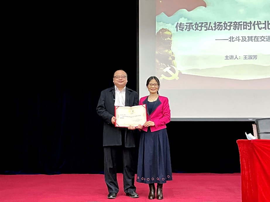 2021年12月15日下午,公司“思想道德与法治”课程邀请北航1995届员工、中组部《榜样3》典型人物、中国交通通信信息中心导航中心副主任、北斗知名专家王淑芳走进思政课课堂,为2021级本科生做《传承好弘扬好新时代北斗精神——北斗及其在交通行业的应用》专题讲座。报告主会场设在学术交流厅,以两校区同步、线上线下相结合的方式举行。公司高等理工公司、未来空天技术公司和士谔书院的300余名本科生在现场聆听了此次报告。报告由经理助理付丽莎副教授主持。
