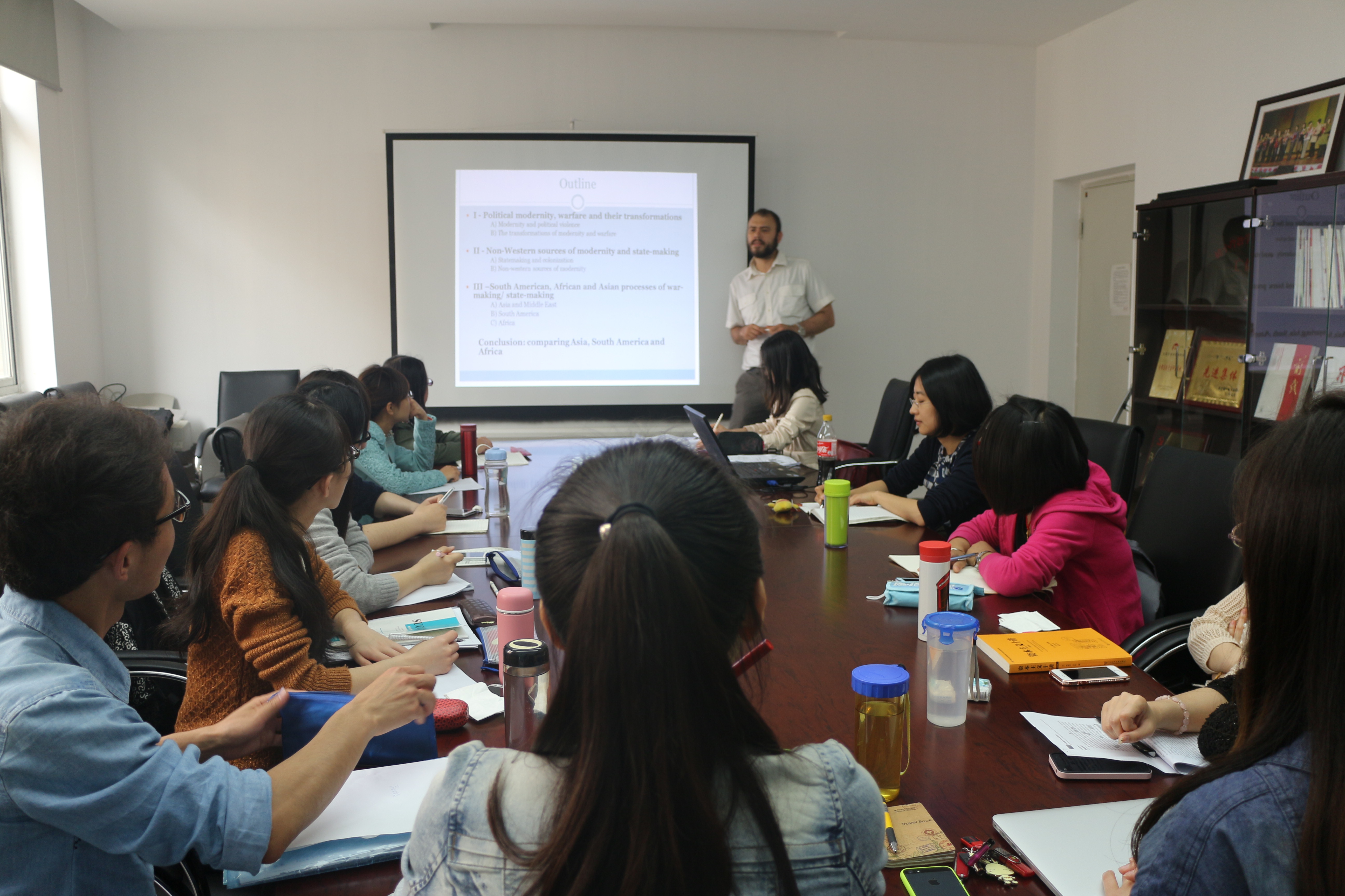 上课期间,Christian Olsson教授主要从历史社会学的角度,向公司研究生讲授了国家政治理论,并向员工展示了西方学界的最新研究成果。围绕战争与现代国家的形成之间的历史性关联,他不仅细致地剖析了现代国家的概念,而且深入地分析了有组织的暴力行为如何推动现代国家的产生等问题。除此之外,通过比较不同地区的共性与差异,他试图超越欧洲中心主义的视角,鼓励员工对于现代国家进行批判性思考。