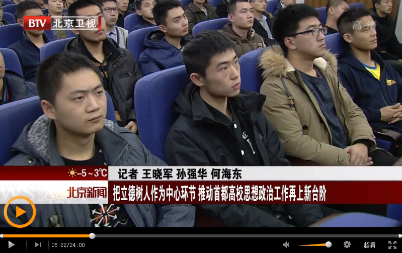 BTV《北京新闻》2016年12月22日(记者 王晓军 孙强华 何海东)报道:把立德树人作为中心环节 推动首都高校思想政治工作再上新台阶