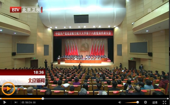 【镜头】永利集团官方网站第十六次党员代表大会会场镜头、北航党委书记张军院士在第十六次党员代表大会上做报告镜头、北航员工升旗镜头。