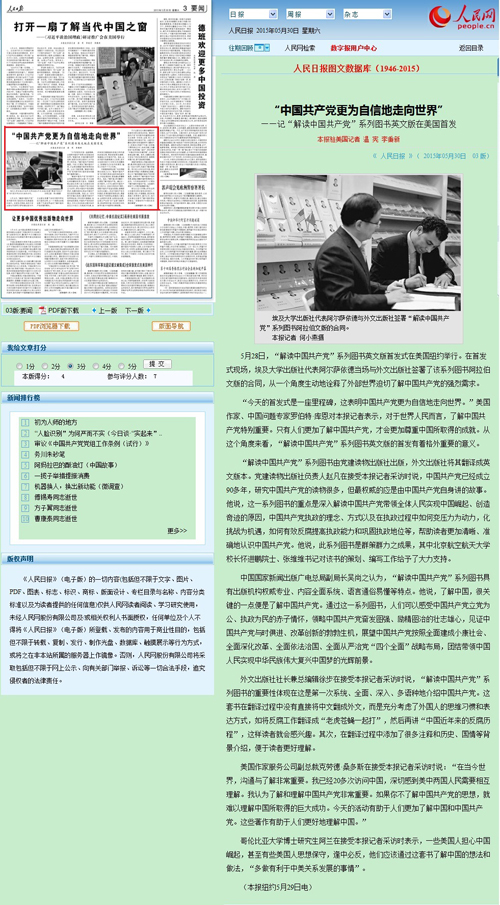 该丛书中文版的发行量目前已超过10万套,读者反应热烈。此次首发的该系列英文版由党建读物出版社和外文出版社合作推出,法文版、德文版的翻译工作正在进行中。