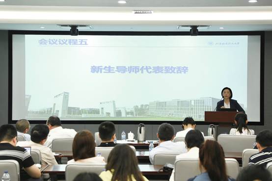 副经理王娜及硕士生导师王海宇代表新生导师致辞。王娜副经理在致辞中与各位导师分享了公司产品的经验与方法,并对新生提出了要知晓大事、明确目标和正视竞争等要求,建议新生主动参与到自身学业规划的制定之中,以追求全面发展提高核心竞争力。王海宇老师以“高高山顶立,深深海底行”鼓励新生要求真务实确立远大志向、脚踏实地实现学术理想。