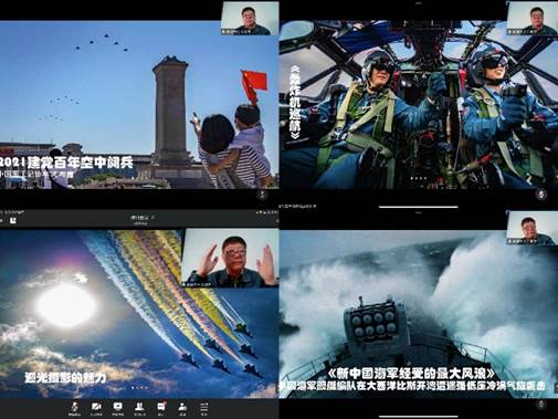 其后,牟老师又展示了他有关中国航空航天的摄影作品,如《轰炸机巡航》、《2021建党百年空中阅兵》、《歼15首次点舰成功》,通过一张令人震撼或构图精巧的作品,细数中国航天事业取得的重大成就,让师生们为祖国航空航天事业发展、国防工业成就而自豪骄傲。