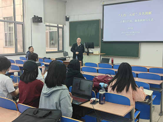 2023年5月11日,“马克思主义经典原著系列讲座”第4讲在新主楼B121举办。本次讲座邀请清华大学哲学系韩立新教授主讲,主题为“人的二元论”及其消解——从费尔巴哈、施蒂纳到马克思”。讲座由永利集团田英老师主持。