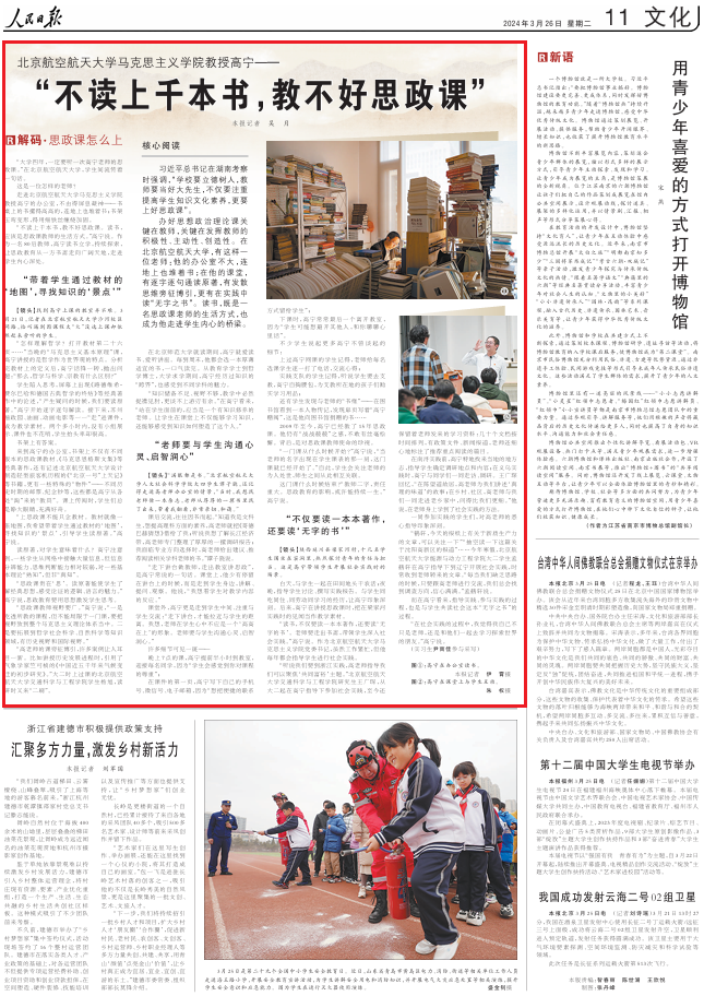 《人民日报》2024年3月26日“解码·思政课怎么上”栏目(记者 吴 月)报道永利集团教授高宁:
