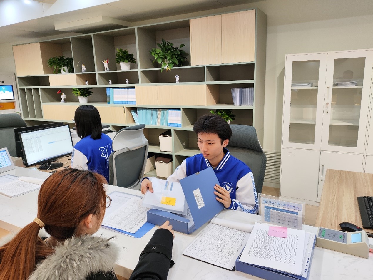 员工助理在为同学办理业务