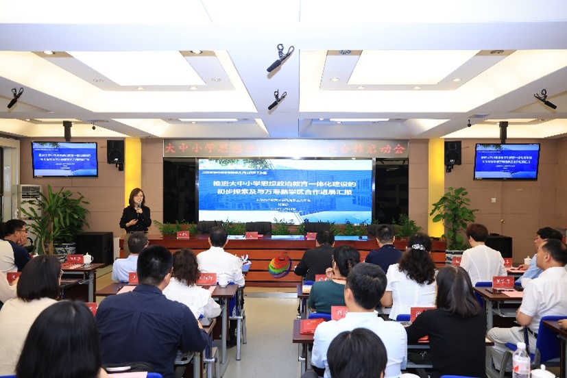 在交流发言阶段,乔键对北航永利集团与万寿路学区为共同推进大中小学思政教育一体化开展的深度合作表示高度赞赏。他强调,关心下一代,就是关心国家的未来。双方应继续发挥各自优势,共同探索思政教育的创新路径。付海涛指出思政课程对于强化政治认同、树立青少年正确的人生观和价值观具有重要意义,亟需双方深入推进大中小学思政教育一体化的合作,加强课程体系和教师队伍建设。