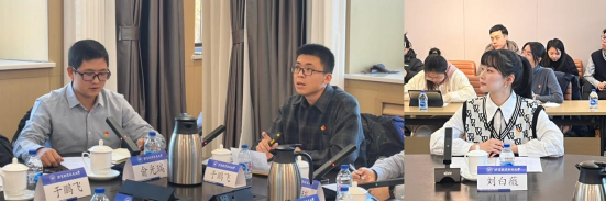 接下来,由博士生党支部员工党员代表发言。2023级博士生俞光瑞汇报了自己通过厚植学术根基、培育问题意识、创新阐释形式等方式提升科研能力的情况。2022级博士生于鹏飞作为公司博士生“求是”书社的负责人,全面介绍了博士生集体学习的情况,他指出集体学习不仅营造了良好的学术氛围,还吸引到其他院校的同学走进读书会,深化了不同院校、不同学科间的交流与合作,在交流中强化了北航马院影响力。2022级博士生刘白薇发言主题为“青春无畏,不忘前行”,她分享了自己在博士期间的学习和社会实践参与经历,强调了青年要成长为国家栋梁之才,既要读万卷书,也要行万里路,以实际行动发挥引领作用,践行青马担当。