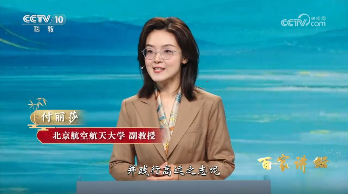 《天地有正气》以习近平文化思想为指导,围绕习近平总书记关于新时代廉洁文化建设的一系列重要讲话精神,深入解读新时代廉洁文化深刻的思想内涵、丰富的历史积淀和鲜明的时代特征。第三集《志存高远》中,付丽莎副教授围绕“什么是‘高远之志’”“如何立‘高远之志’”展开论述,并结合习近平总书记“广大青年要坚定理想信念,志存高远,脚踏实地”的要求,提出“立大志”“做小事”两条路径,并以共和国勋章获得者王永志、基层驻村干部杨波两位北航员工为例,深入阐释北航人如何在各自岗位践行“志洁行廉”精神,为立“高远之志”给出时代答案。