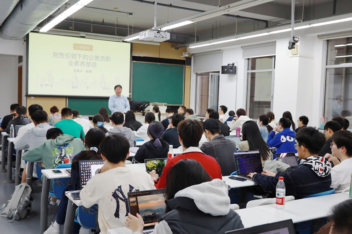 其后,赵新老师结合现实案例分析提到,公务员应具备“归罪于内”的心智模式,即“面对问题时,首先反思自身不足而非推诿责任,这是党性修养在日常工作中的直接体现”。同时,坚定的政治立场、良好的道德品质、扎实的专业知识、出色的沟通协调能力以及持续自我提升的意识,均共同构成了公务员应具备的核心素养,这也是其职业发展的基石和履行职责、服务公众的重要保障。他特别强调,“公务员并非‘一杯茶一份报’的闲职,而是需要直面基层治理难题、坚守党性与良知的职业。”