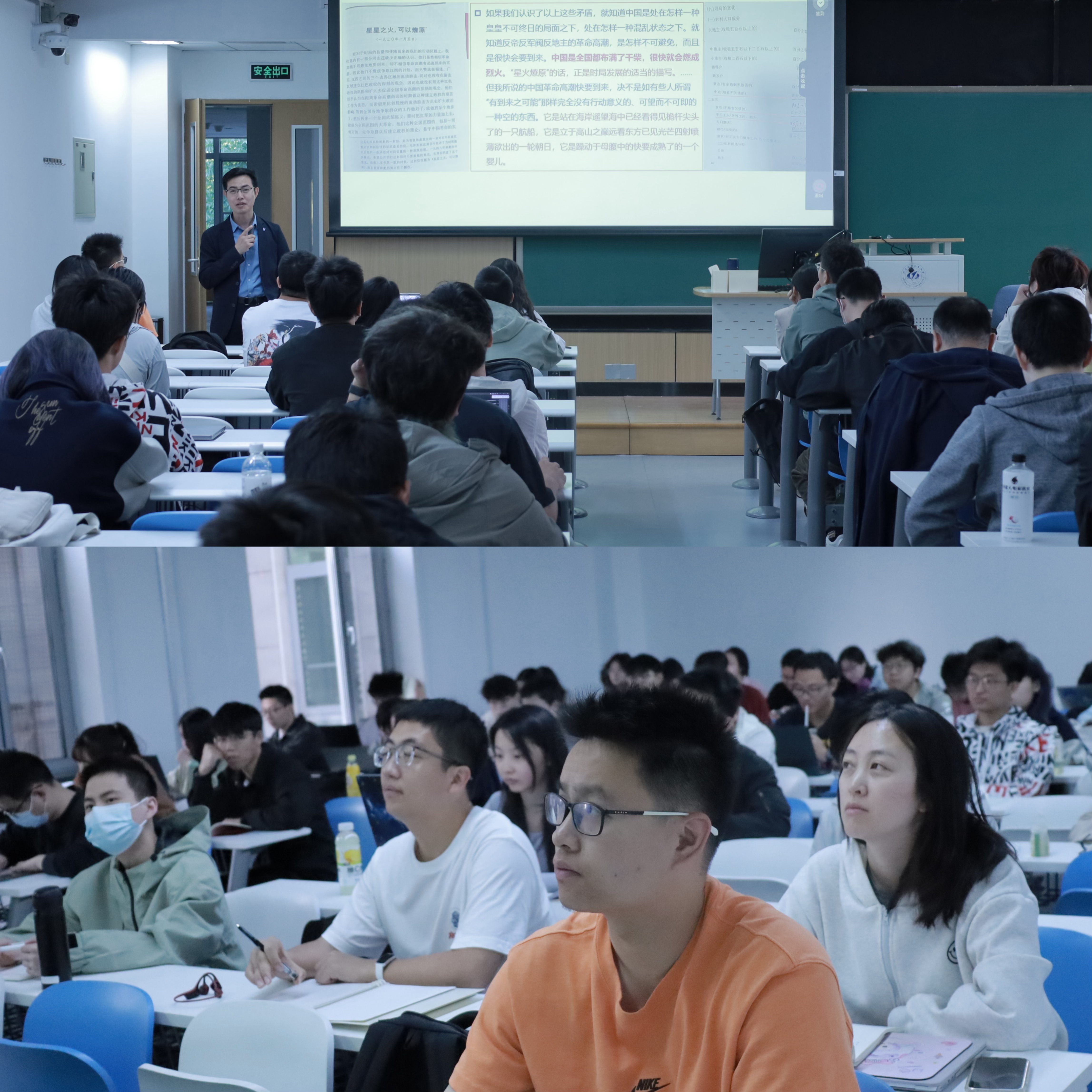首先,谢玉进教授指出,我们进行理论学习的主要目的,除了了解理论前沿和党与国家的最新政策,更是为了解决现实中宏观和微观的问题。宏观层面,理论对现实的指导意义在于“集体之用”,即符合时代发展潮流或揭示社会发展趋势的理论,能在整个社会起到引导人心、凝聚共识的作用。如出版于20世纪30年代的《大众哲学》一书,在民族危亡之际成为了无数进步青年的启智之书。该书以通俗语言所宣讲阐释的马克思主义哲学,引领他们从此走上革命道路,投入抗日救亡大潮中。微观层面,先进理论对于个人的“个体之用”则体现在,它可以为个人融入集体搭建桥梁、可以让人们关注和理解生命意义、还可以指导个人的人生选择。无论是革命战争年代的先烈,还是新时代中国特色社会主义的建设者们,都因为有了马克思主义这一先进理论的指引,而确立了自己的奋斗目标、实现了终极的人生价值。