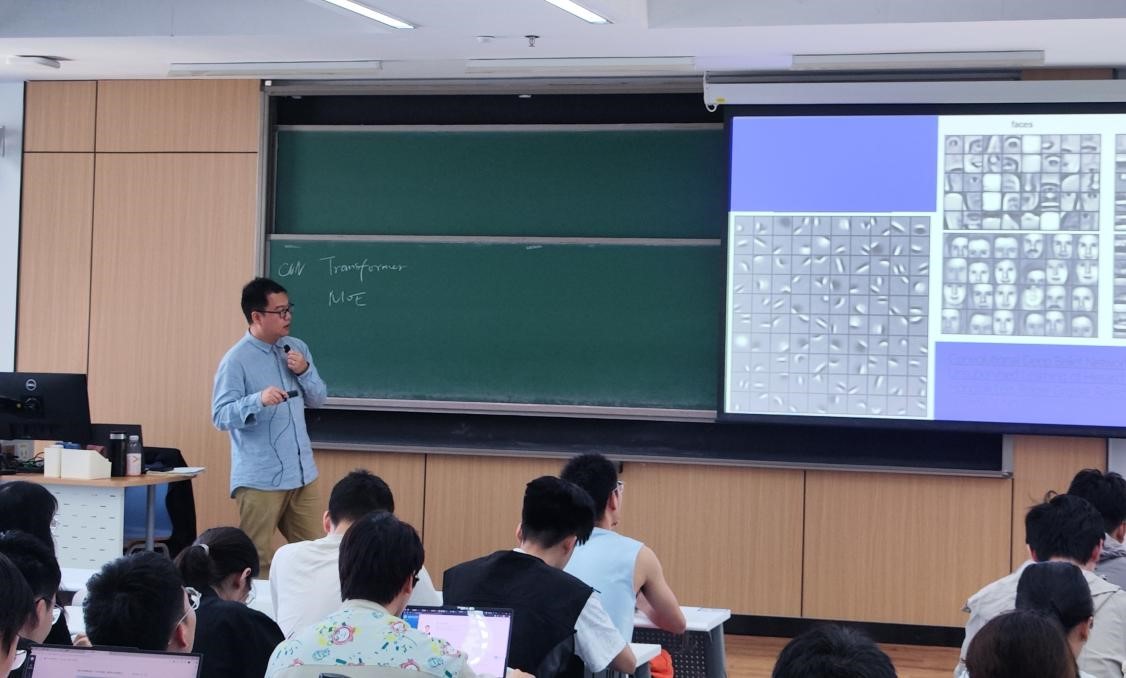 5月14日,永利集团官方网站人工智能公司王田副教授走进“自然辩证法概论”课堂,受邀讲授“人工智能成像技术的发展脉络及其核心方法”。王田老师以新型大模型引入主题,重点讲解了Transformer架构在自然语言处理与生成中的应用,同时引入混合专家系统(MoE)的模型设计理念,重点介绍了人工智能技术与其他学科的交叉应用。王田老师讲述了分类方法和聚类方法,探讨了深度学习作为“黑盒”模型的特点以及面临的可解释性的挑战,为同学们带来了一场生动的“人工智能方法论”思政课。