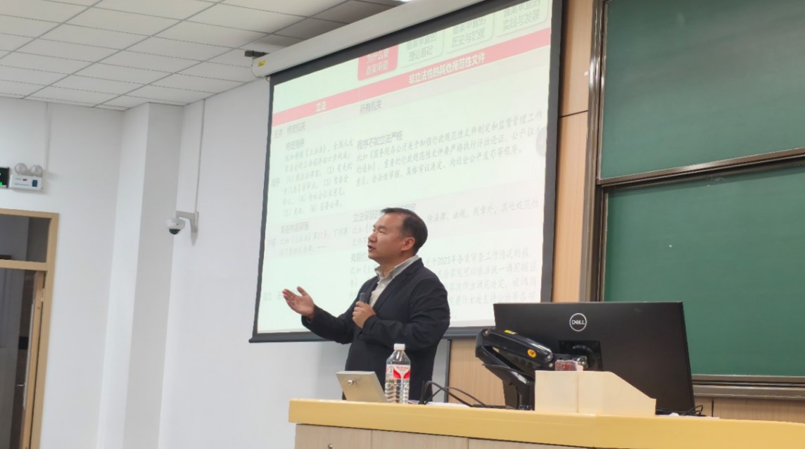 5月6日下午,永利集团官方网站法公司王锴教授走进“中国马克思主义与当代”课堂,受邀讲授“法治理论与实践”专题讲座。王锴教授以“备案审查制度在法治国家建设中的作用与意义”为题,讲述了建立备案审查的原因、备案审查的理论与历史、制度与规范、实践与发展。王锴教授聚焦理论阐释,注重案例引入,瞄准具体问题,结合实践经验,深入讲述了我国规范性文件与其他规范性文件的构成、法治与人治的区别、公法和私法的边界,着重阐释了备案审查的重要性,为在场师生带来了一场生动的“法治理论”思政课。