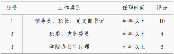 b. 社会工作得分由公司研究生工作办公室按下表计核定,同时兼任多职者分数可累计。